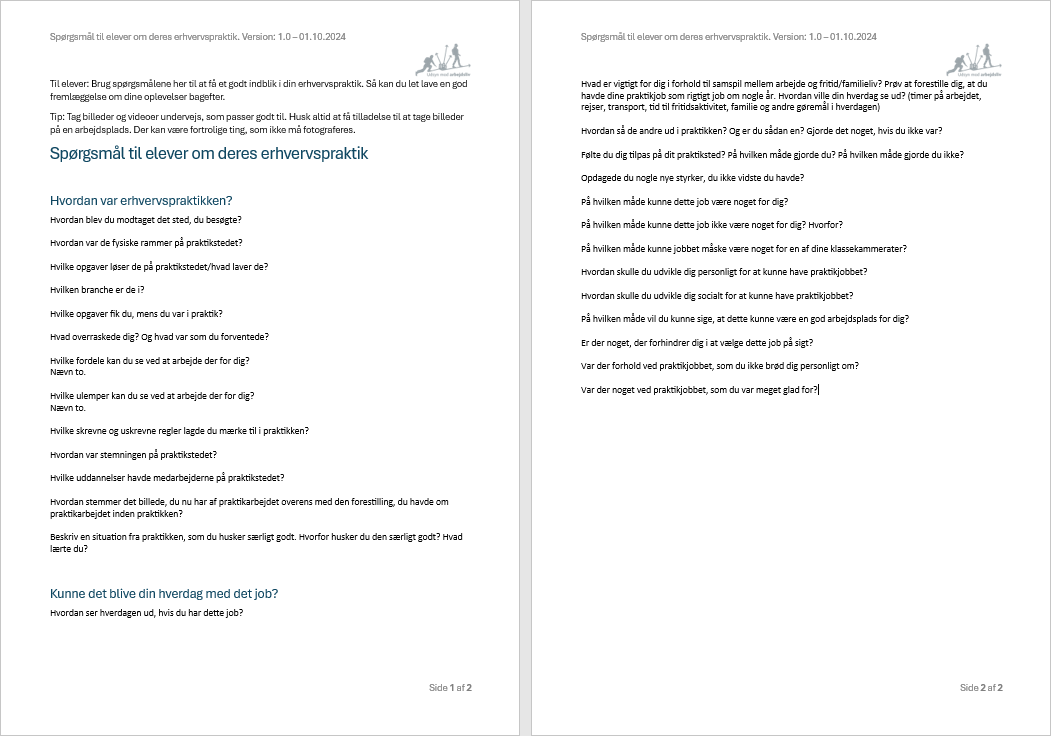Tag en kopi af dokumentet her og notér i det løbende, mens du er i erhvervspraktik.