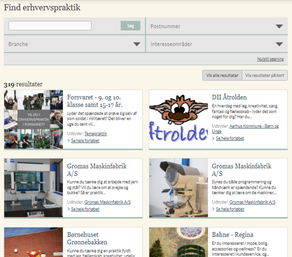 - Find en erhvervspraktik blandt de officielle tilbud.